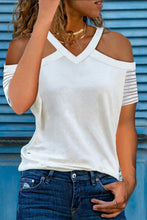 Striped Raglan Sleeve Cold Shoulder V Neck Blouse