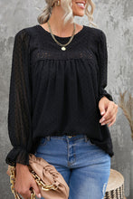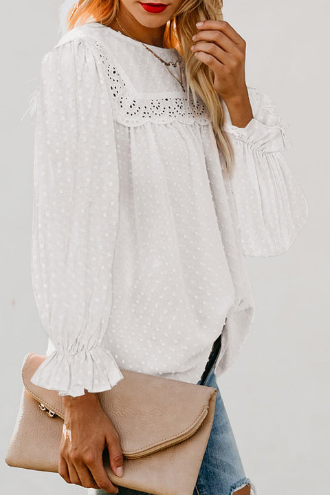 Swiss Dot Hollow Out Ruffle Sleeve Blouse
