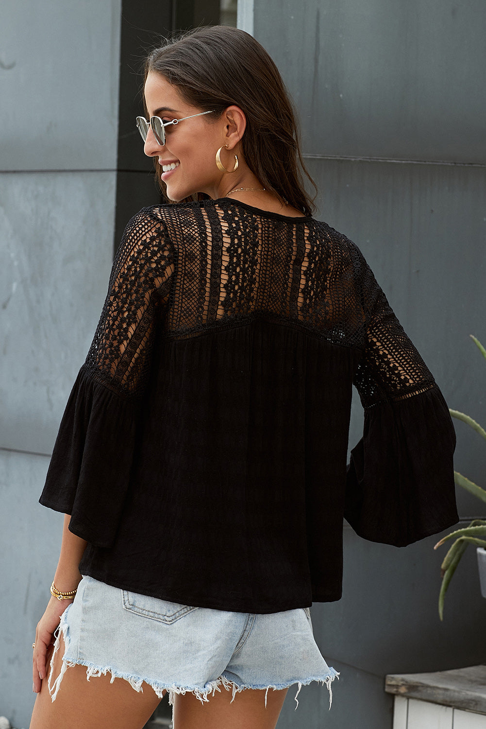 •Designed with a relaxed silhouette and flowy bell sleeves for a whimsical, bohemian inspired fit