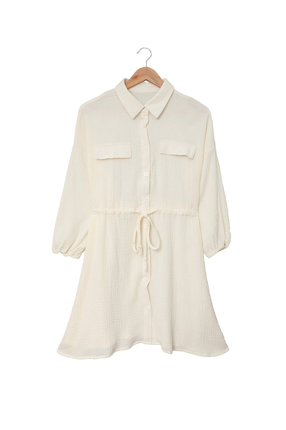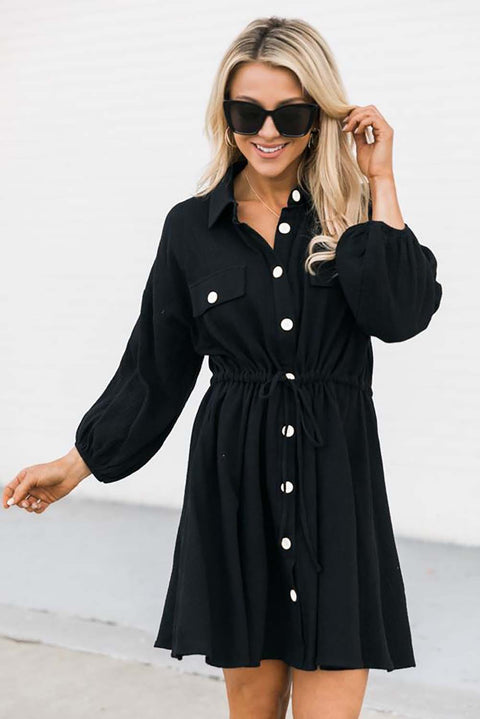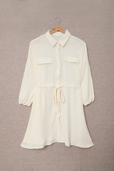 •This dress features a simple chic shirt style, drawstring tunic design of the waist and flare fit