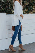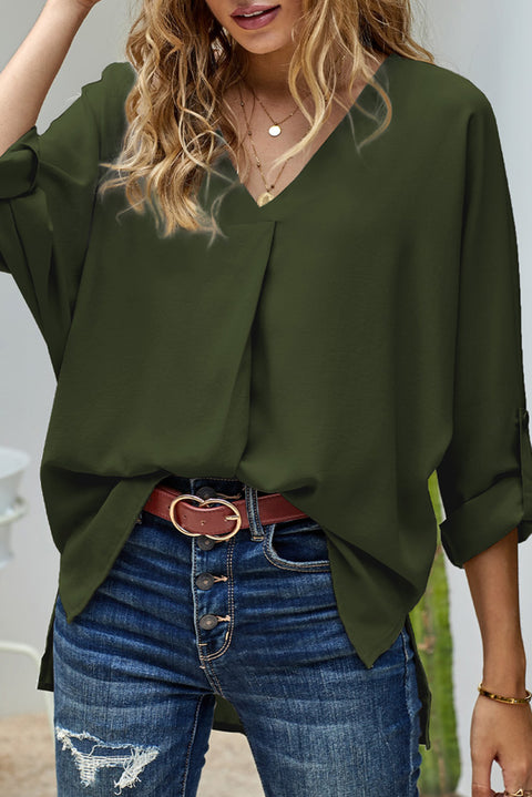 V Neck 3/4 Sleeve High Low Hem Shirt