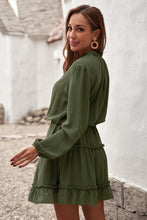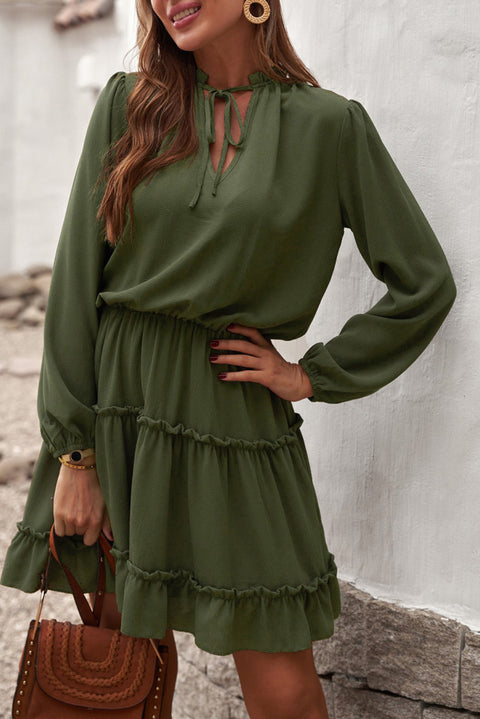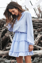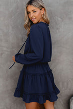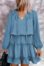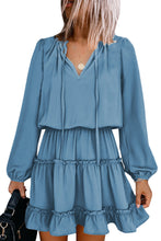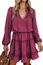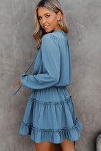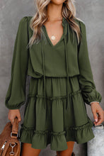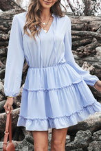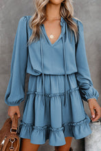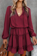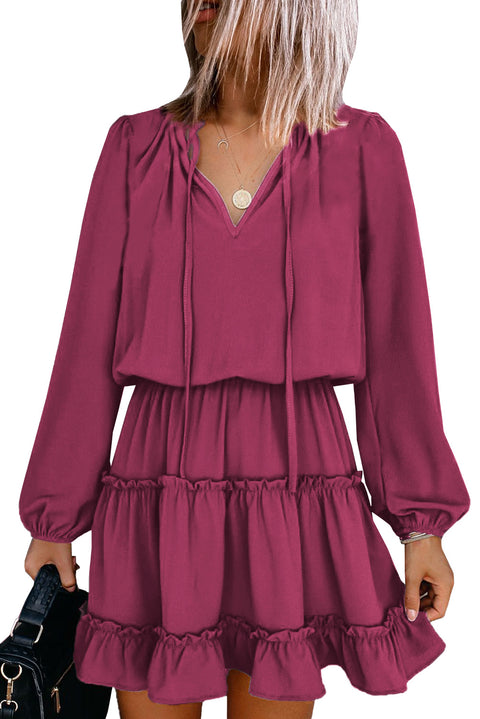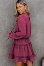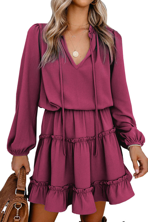 V Neck Long Sleeve Ruffle Tiered Mini Dress