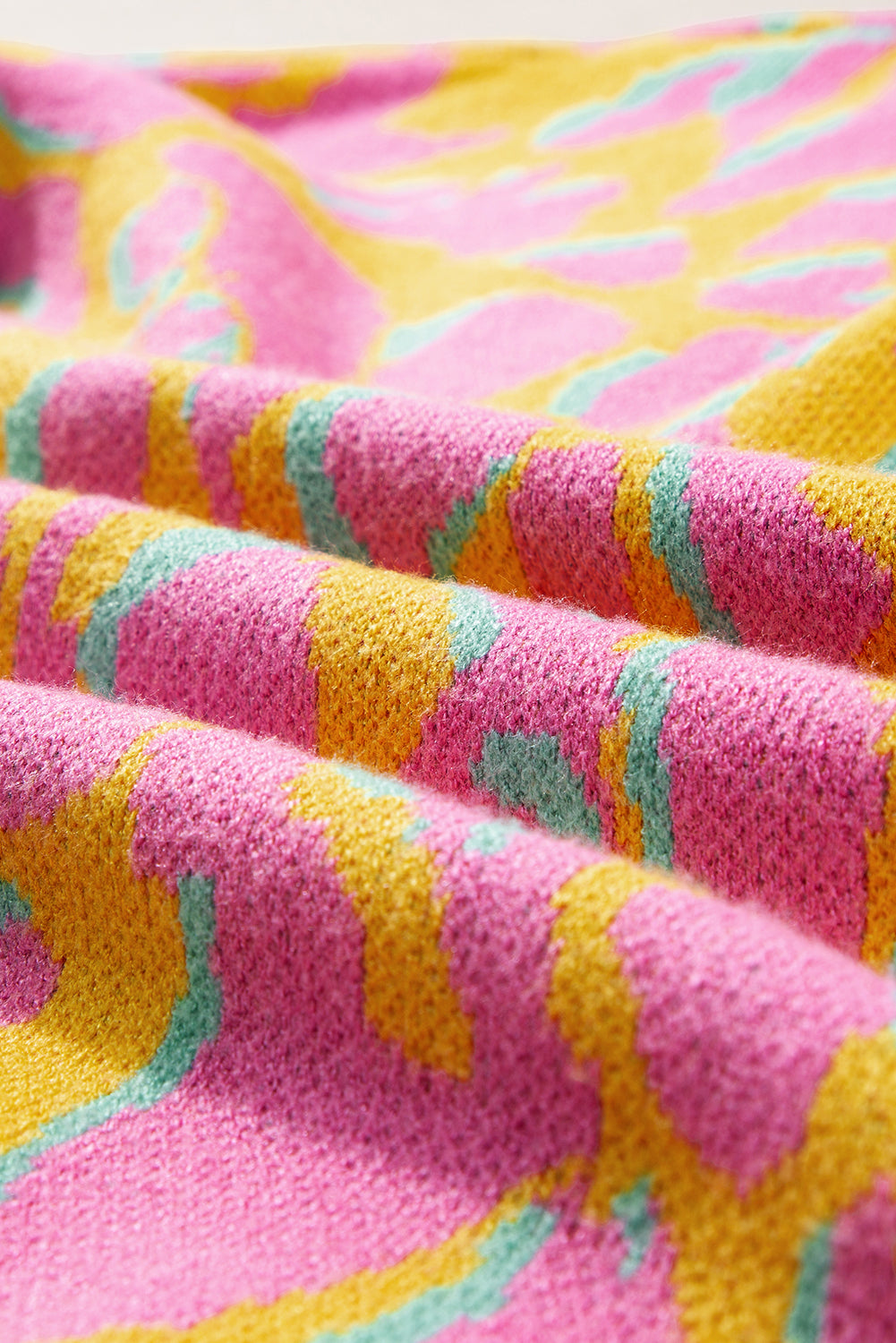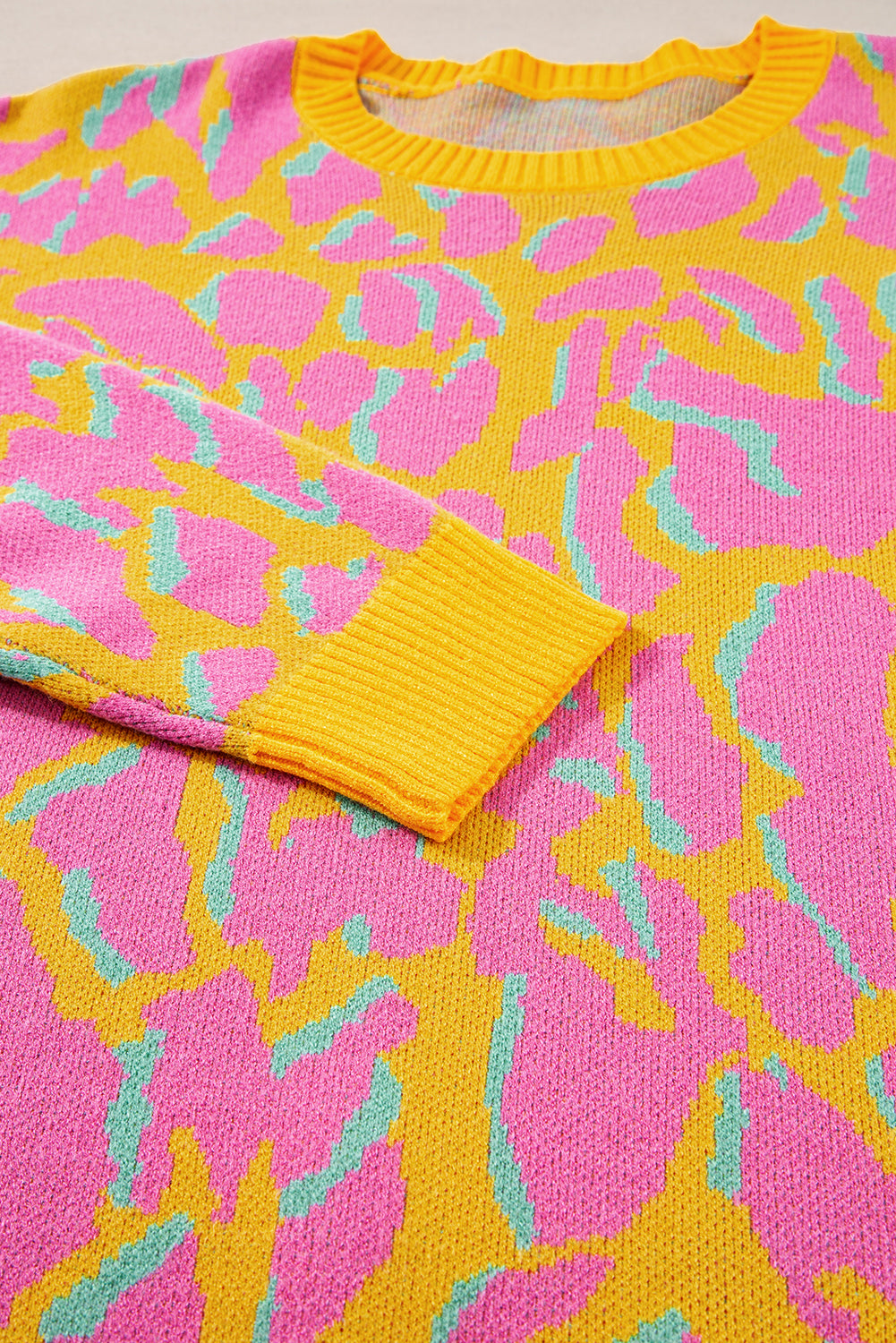 Vitality Orange Abstract Print Ribbed Trim Baggy Sweater