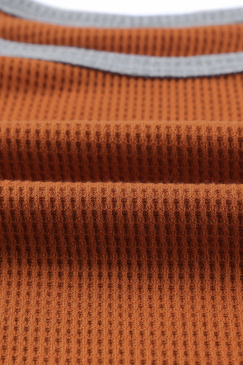 Waffle Knit Leopard Patchwork Long Sleeve Dress