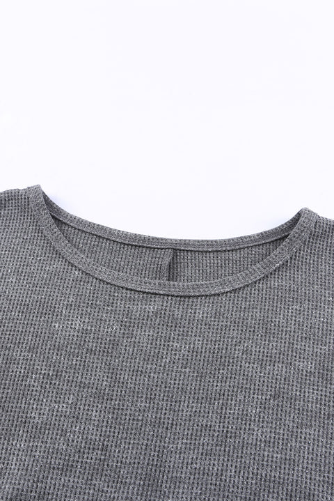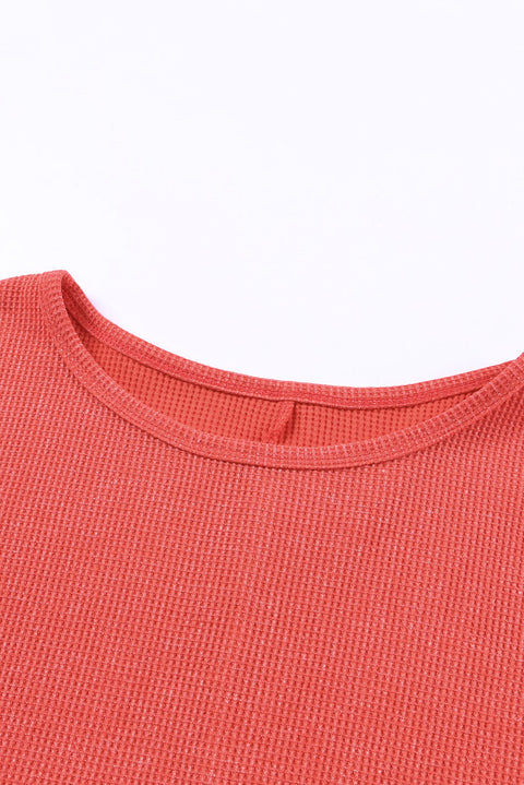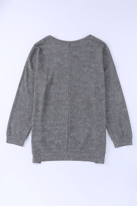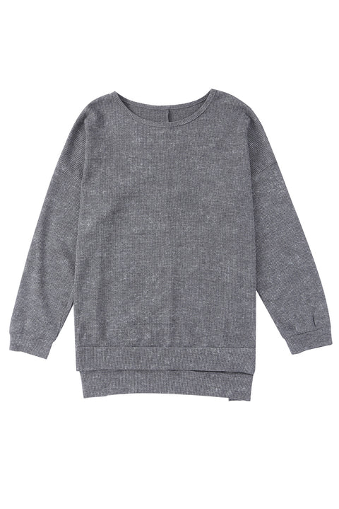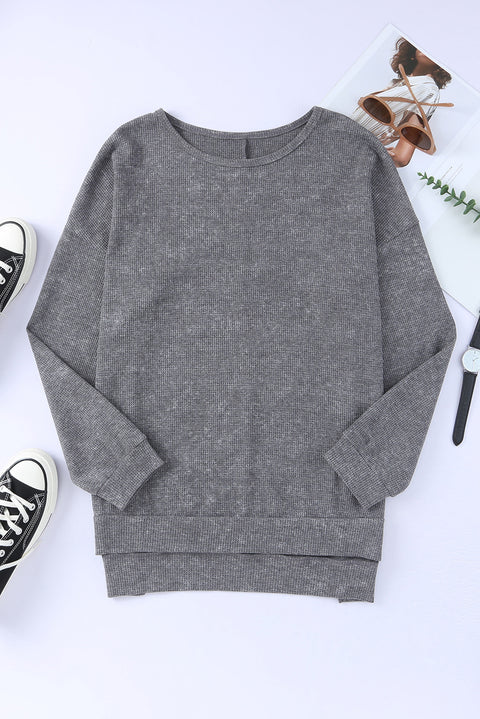 Waffle Knit Side Slit Pullover Top