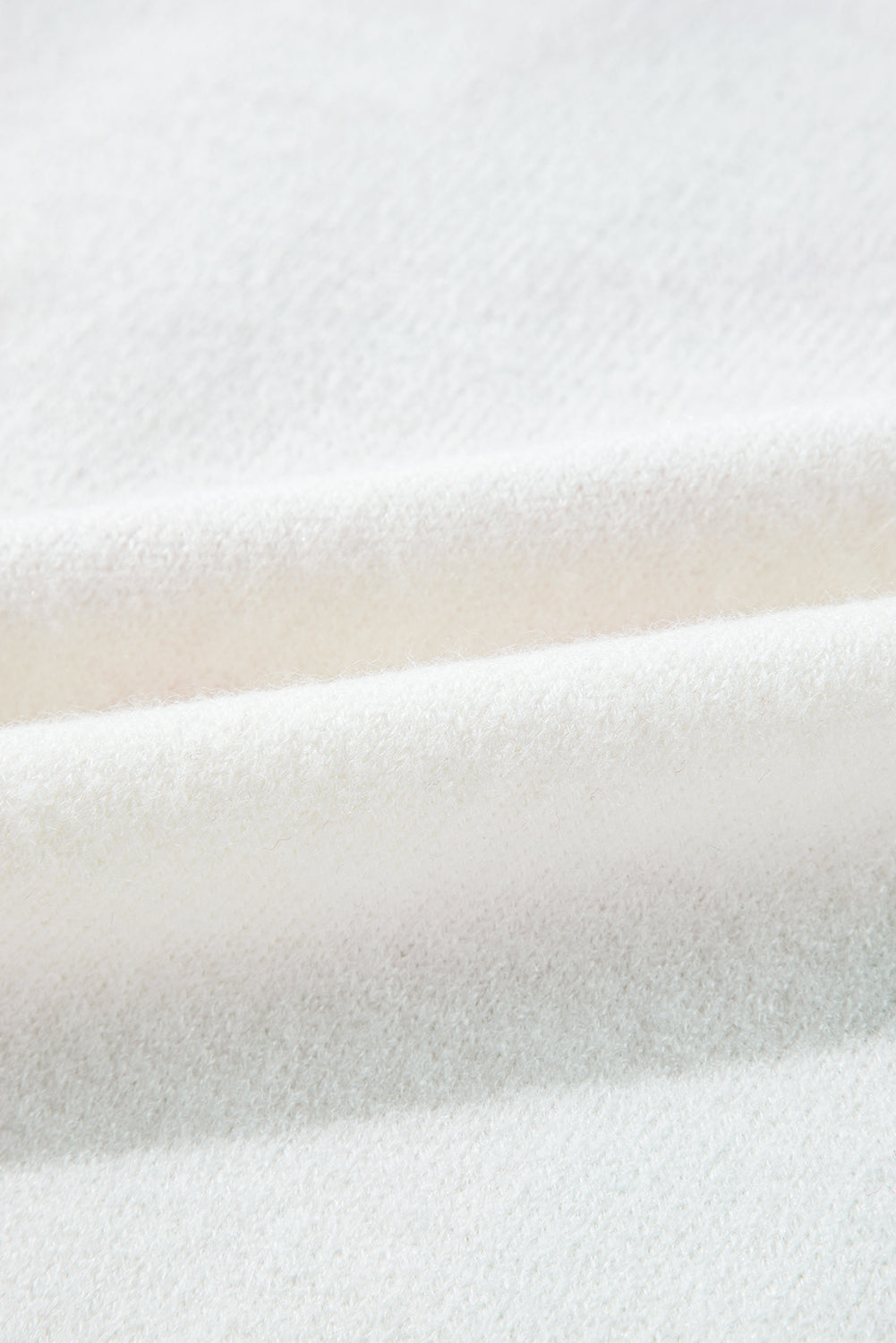 White Big Flower Pattern V Neck Drop Shoulder Sweater