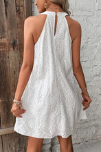 White Boho Eyelet Pattern Halter Neck Sleeveless Dress