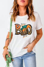 White BOO Pumpkin Leopard Print Crew Neck T Shirt