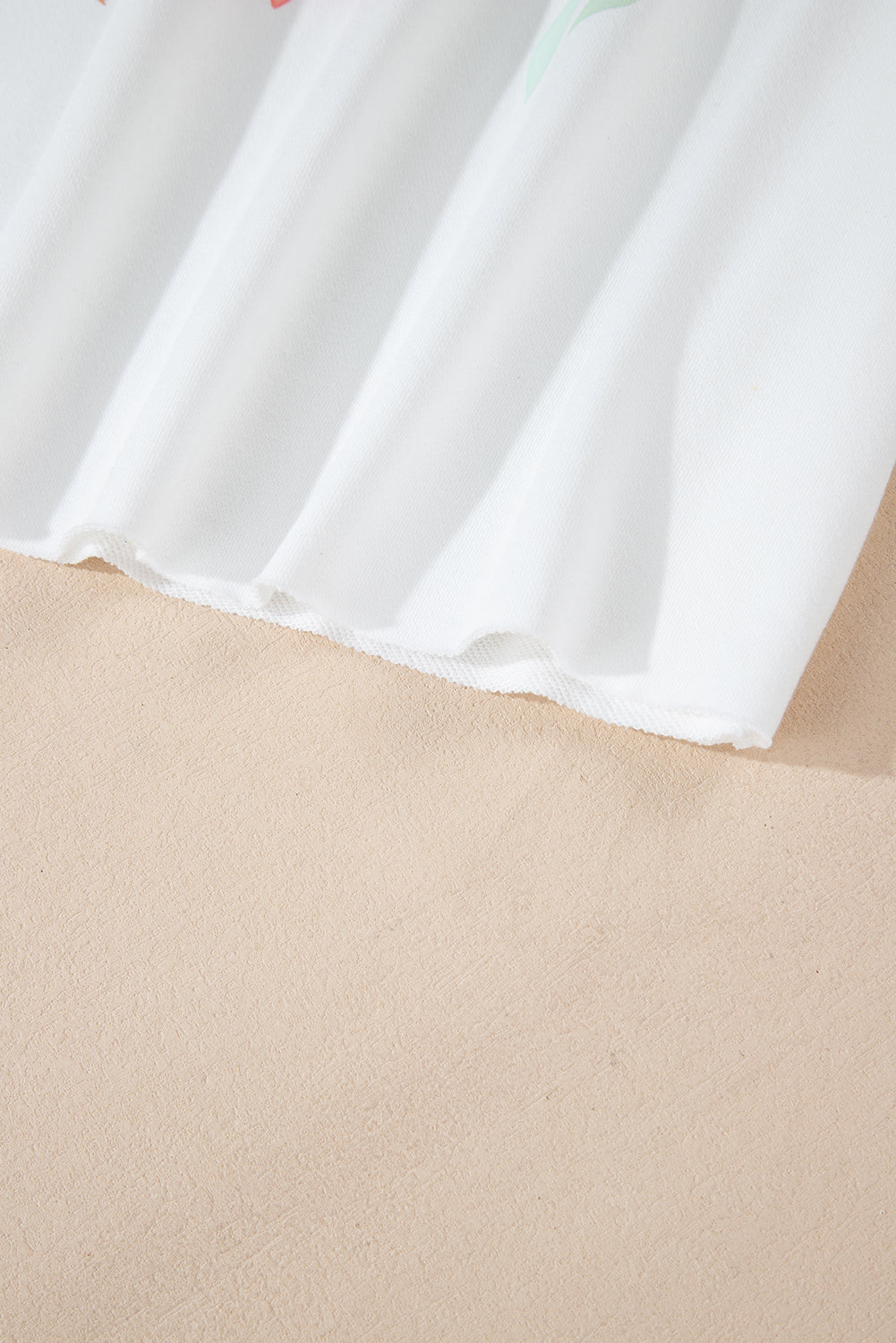 White Bowknot Pattern Drop Shoulder Loose Sweatshirt