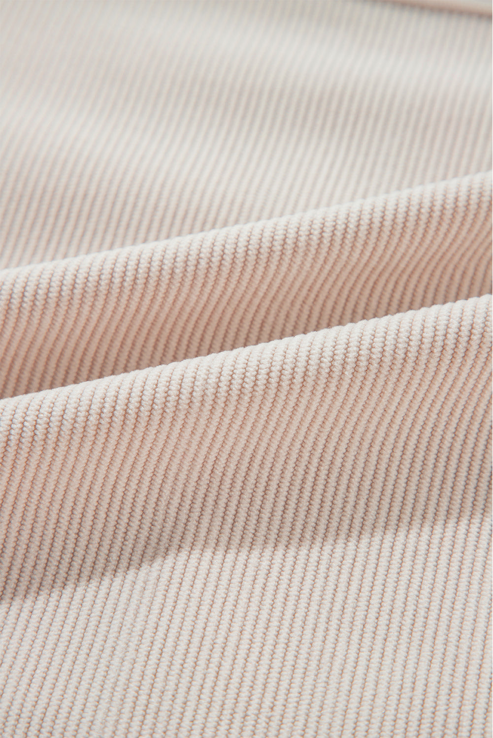 White Corduroy Drawstring Hooded Pocket Zip Up Jacket
