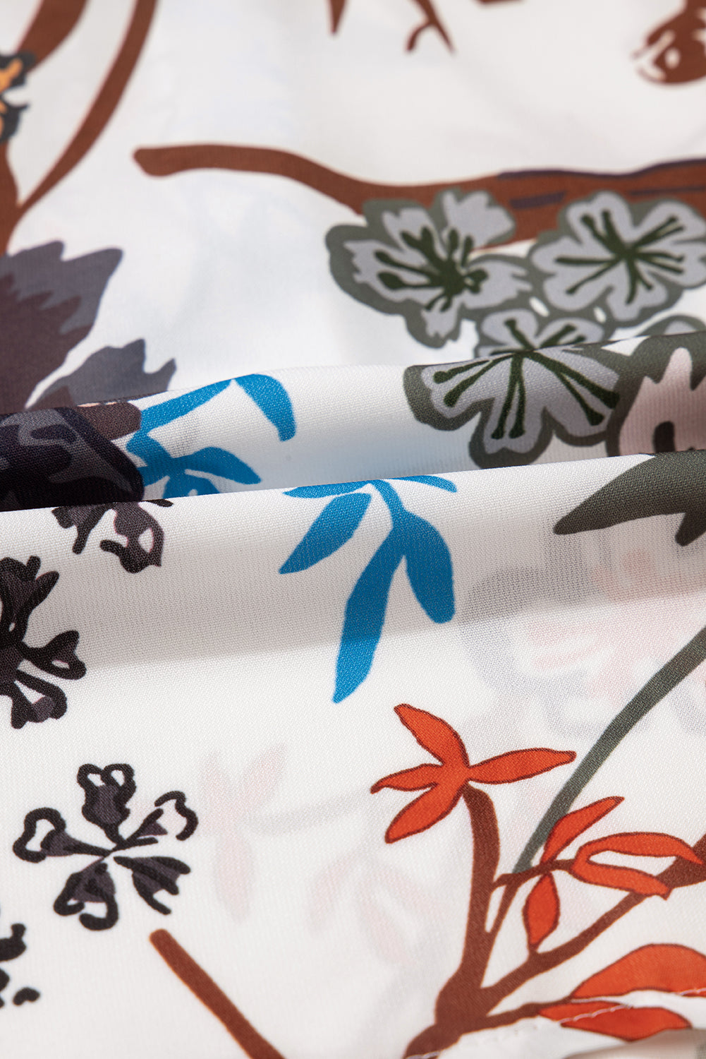 White Floral Print Balloon Sleeves Button Up Loose Casual Shirt