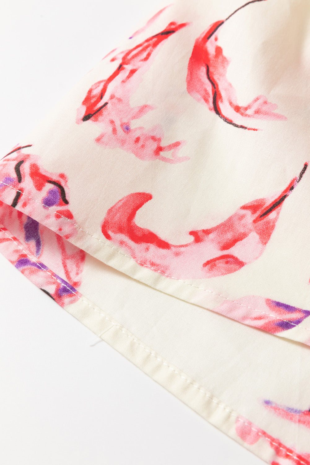 White Floral Print Lace up V Neck Balloon Sleeve Plus Size Shift Mini Dress