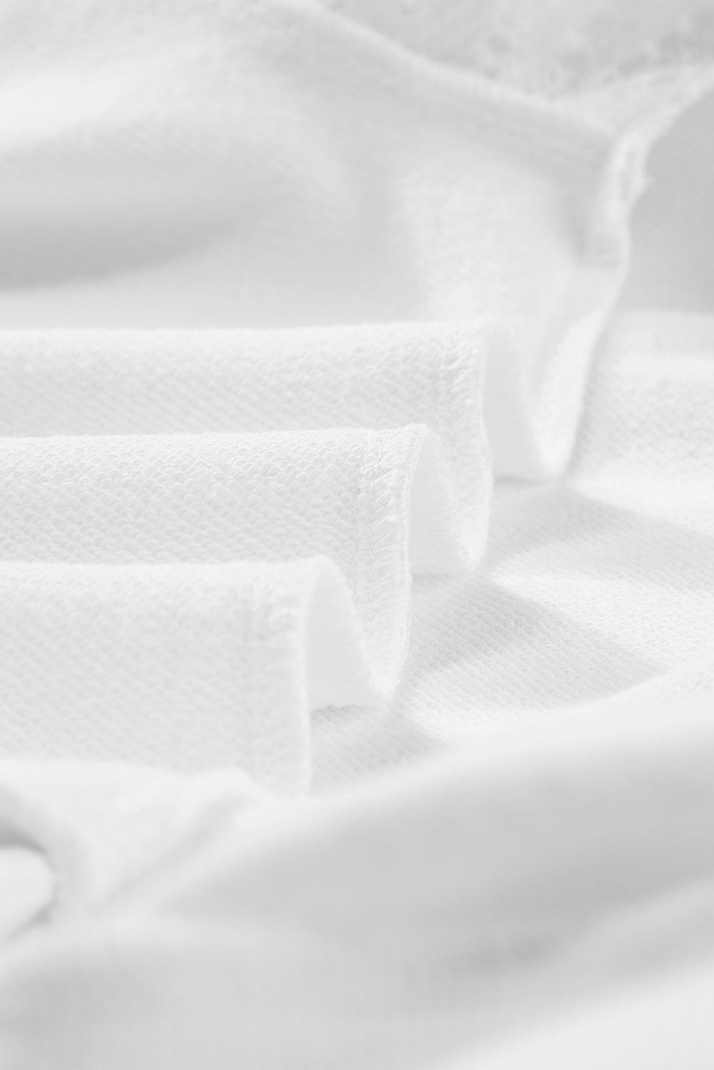 This stylish White Lace Patchwork Sleeve Drawstring Hoodie combines fashion and comfort. The delicate lace details add a touch of elegance to the classic hoodie design. The drawstring feature allows for a customized fit, making it the perfect addition to any wardrobe. Stay cozy and stylish in this unique hoodie.