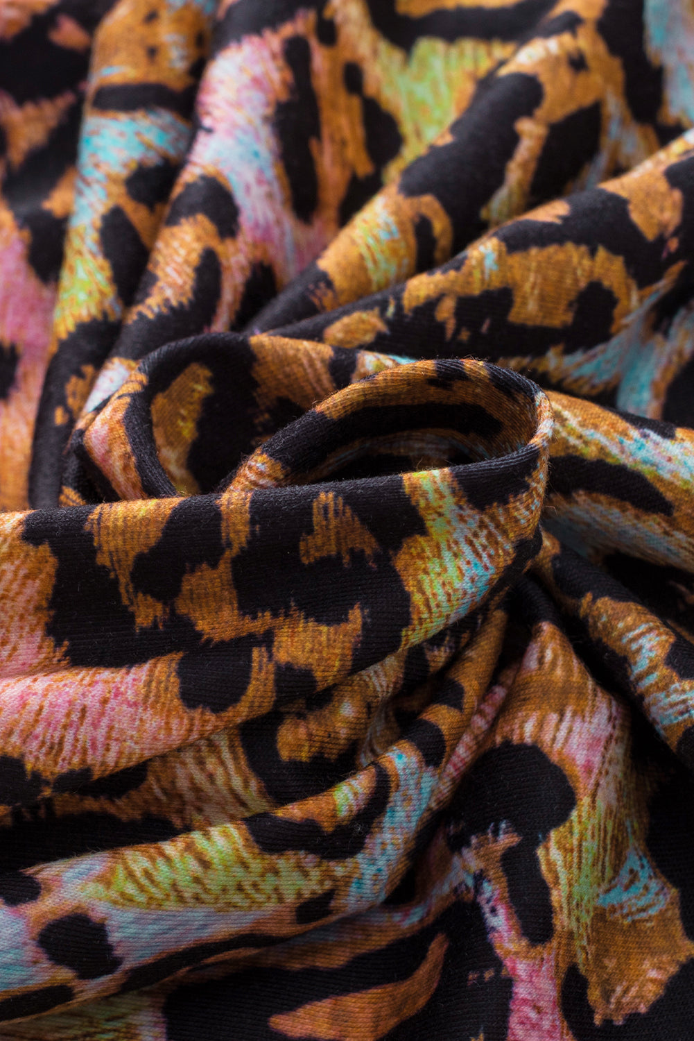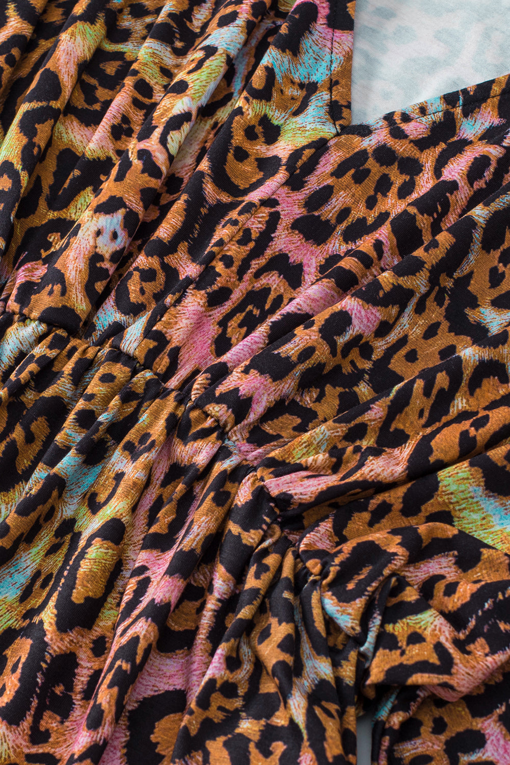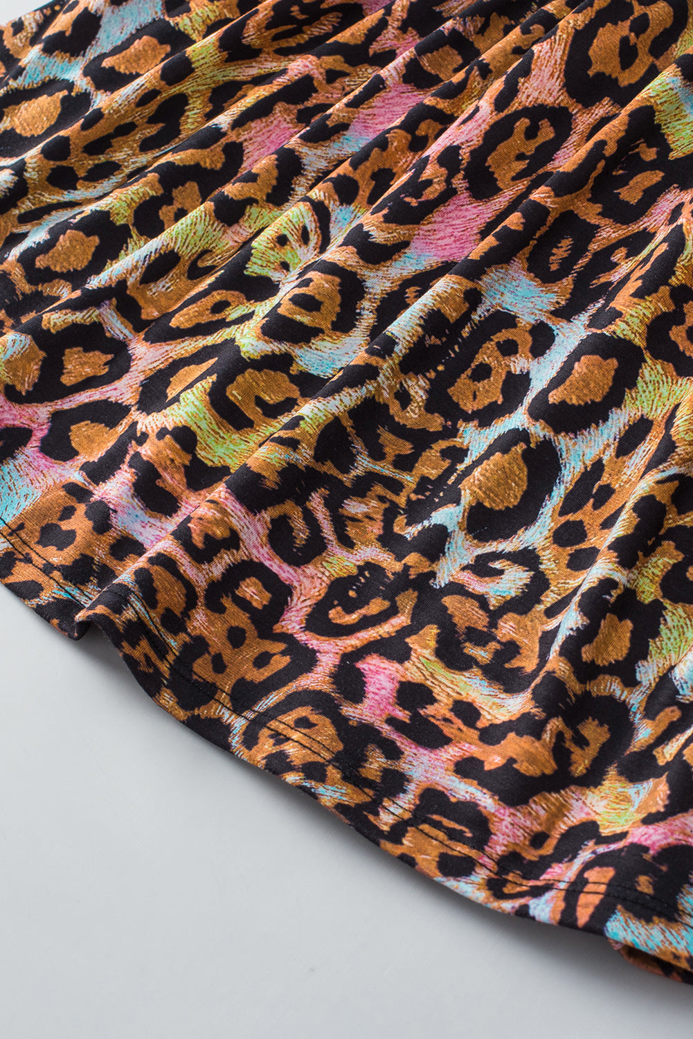 White Leopard Print Wide Sleeve Peplum Hem Blouse