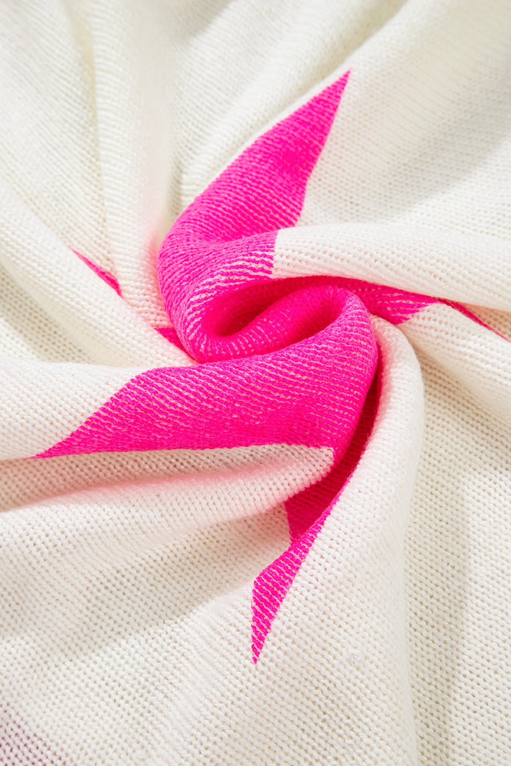 White Star Pattern Colorblock Striped Edge Drop Shoulder Sweater