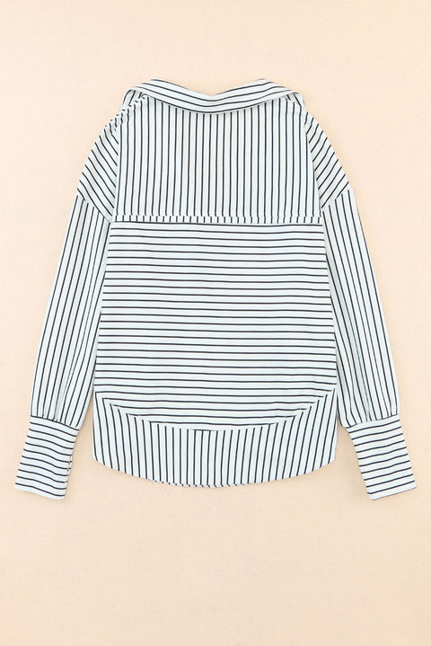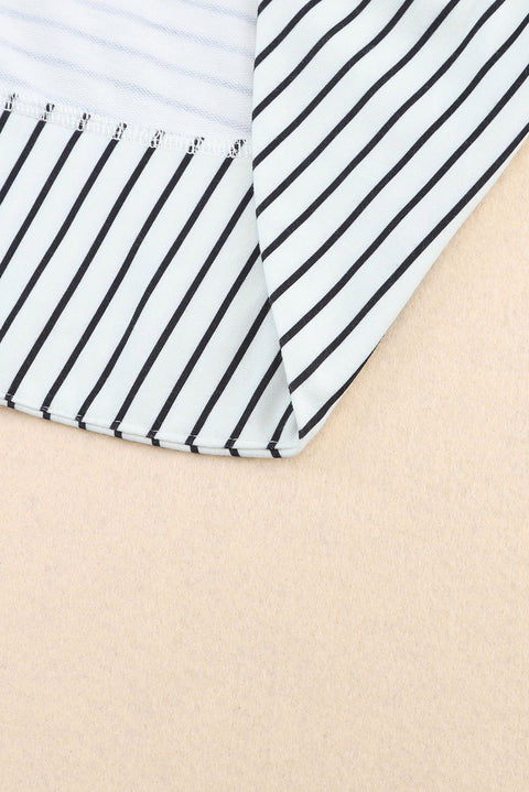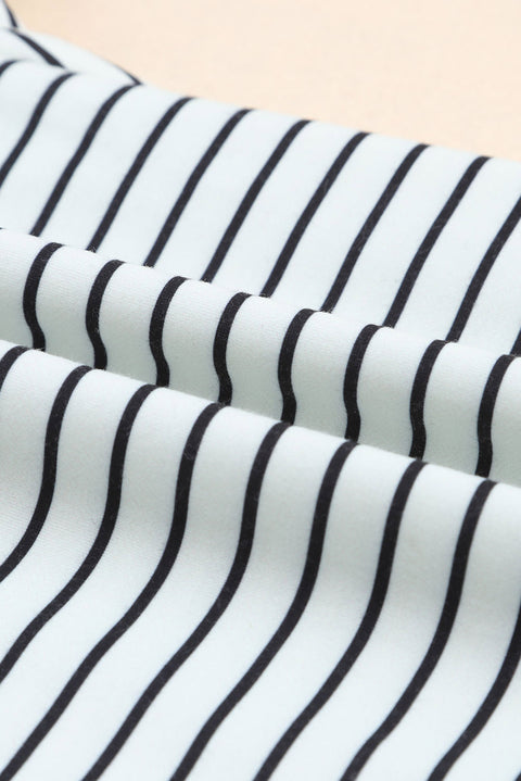 White Striped Thumbhole Drop Shoulder V Neck Top