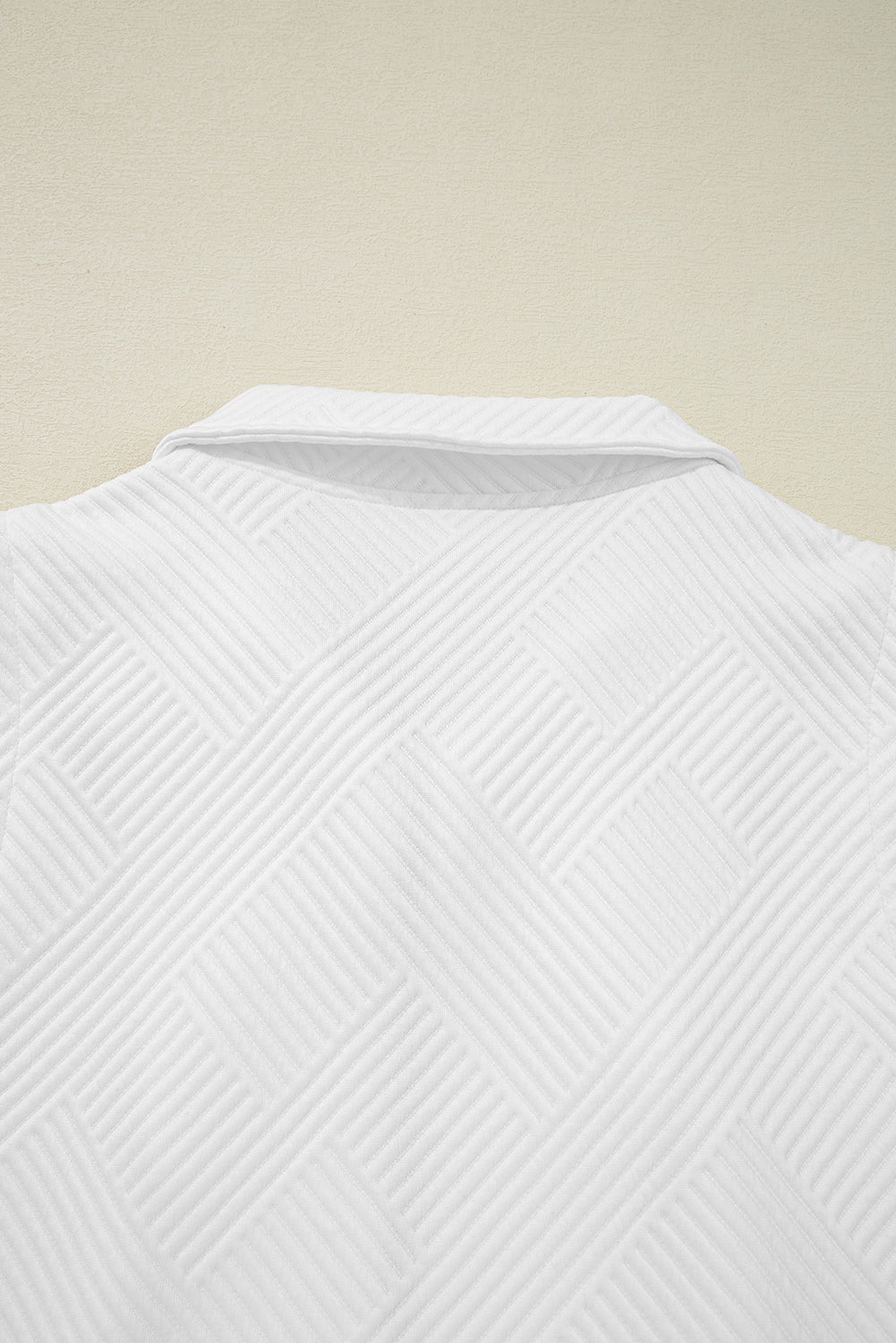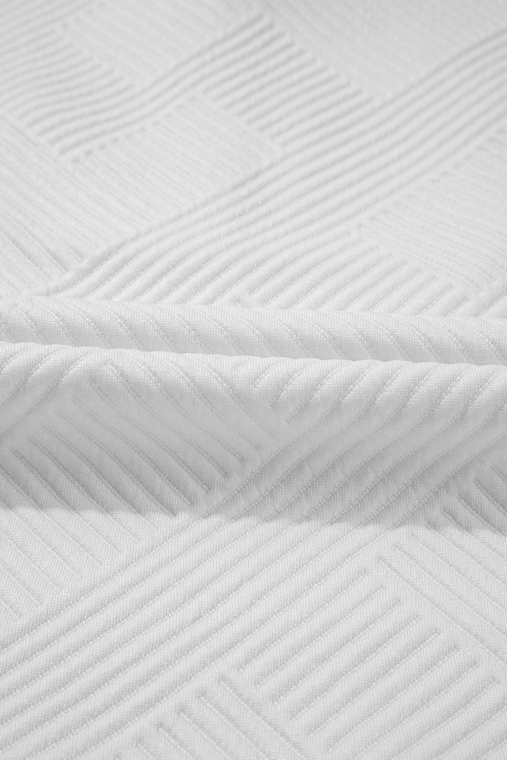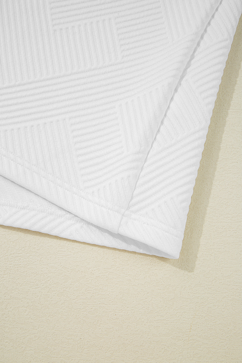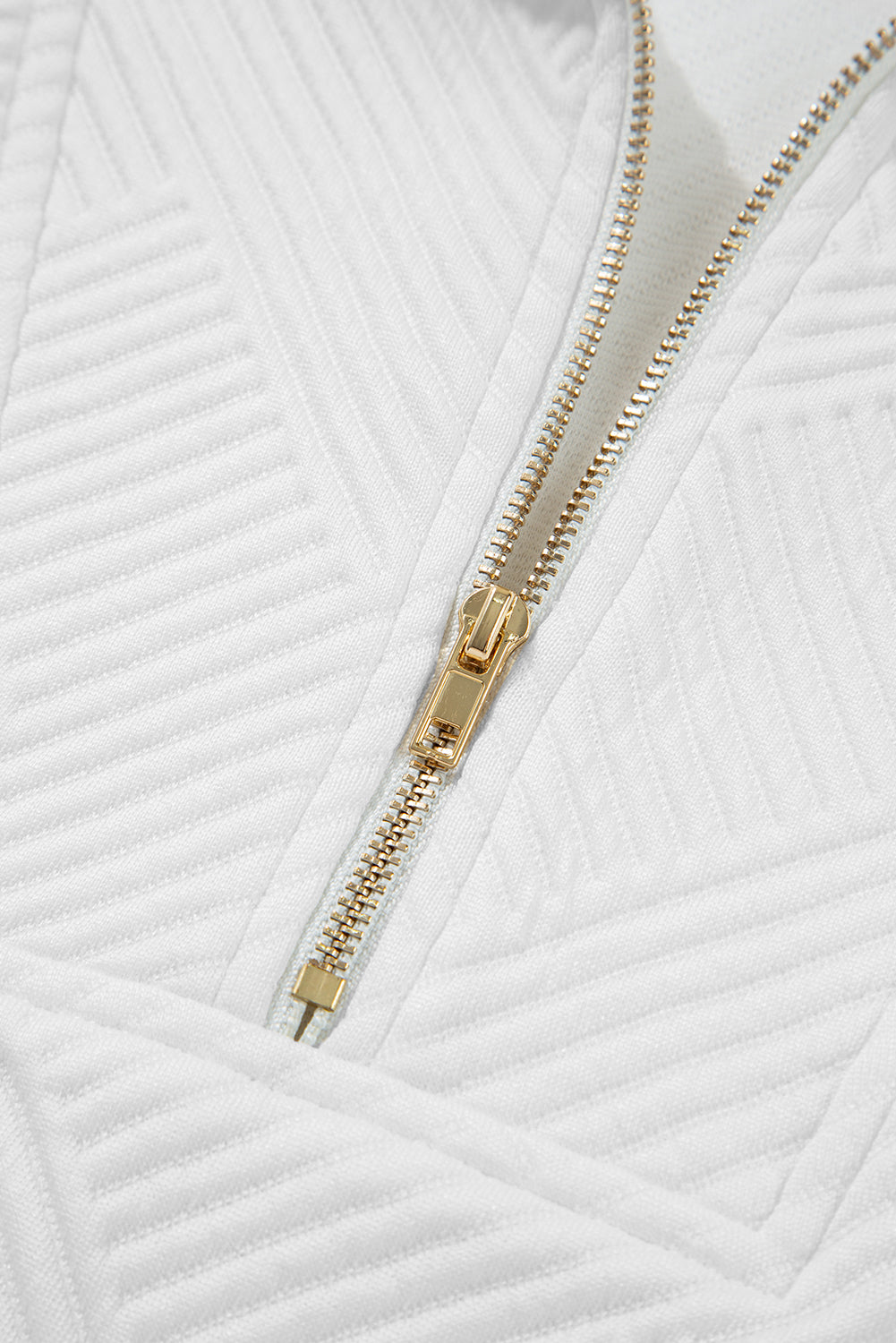 White Textured Half Zip Tank Top Drawstring Shorts Set