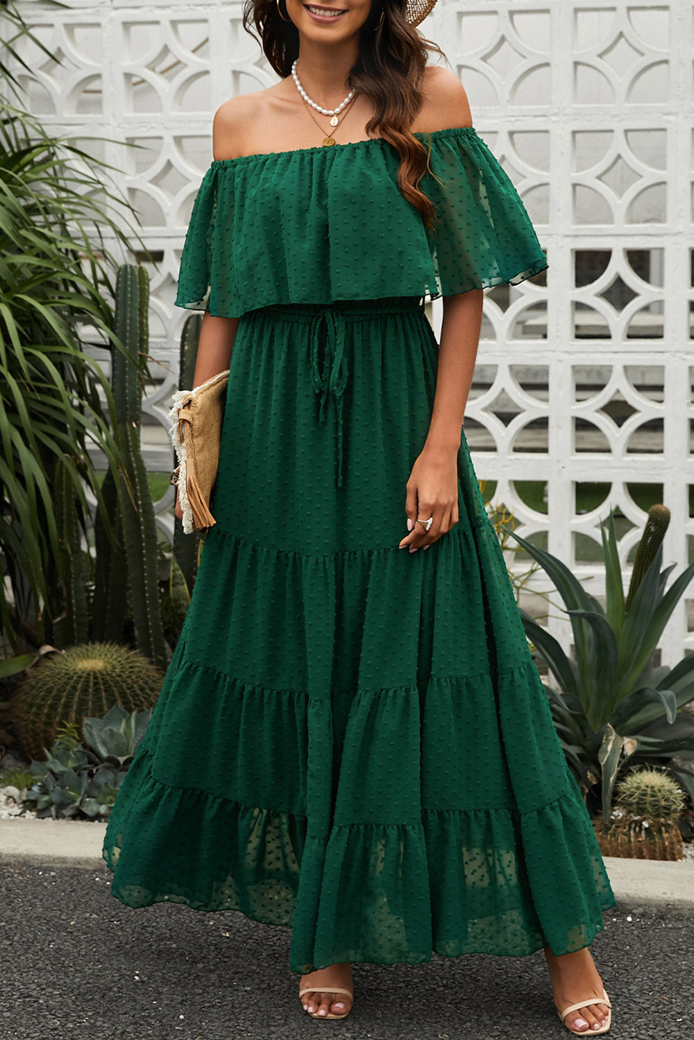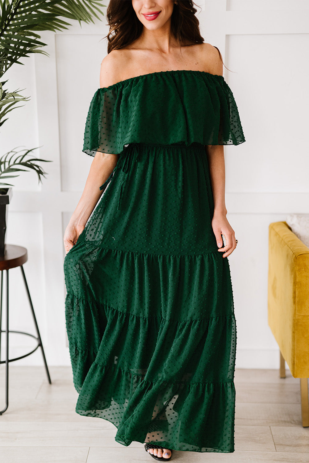Yellow Yellow Off Shoulder Ruffle Swiss Dot Maxi Dress